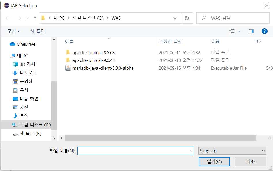4. [1]에서 다운받은 JAR파일을 선택하여 "열기" 클릭