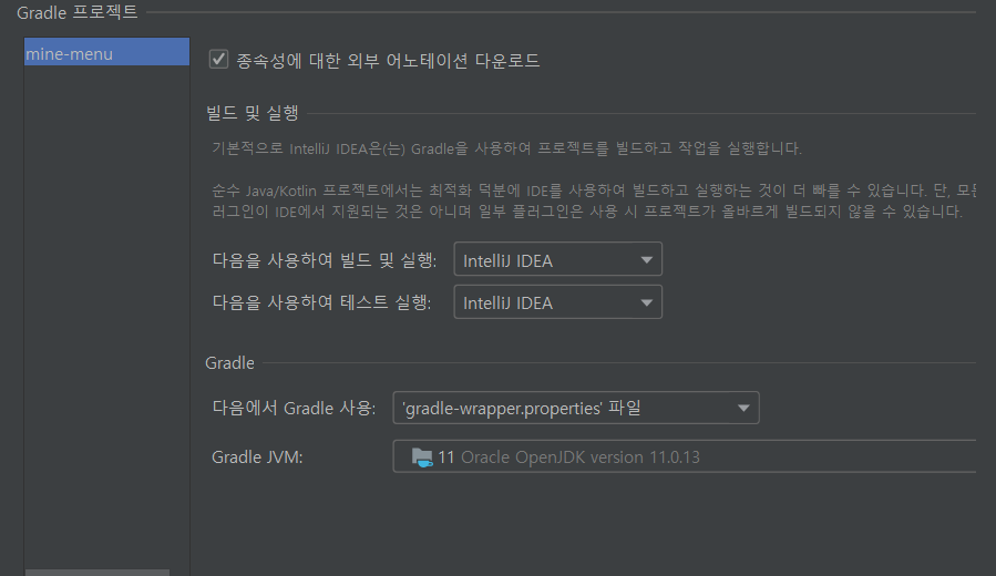 설정-빌드-Gradle에서 설정을 아래와 같이 해준다.